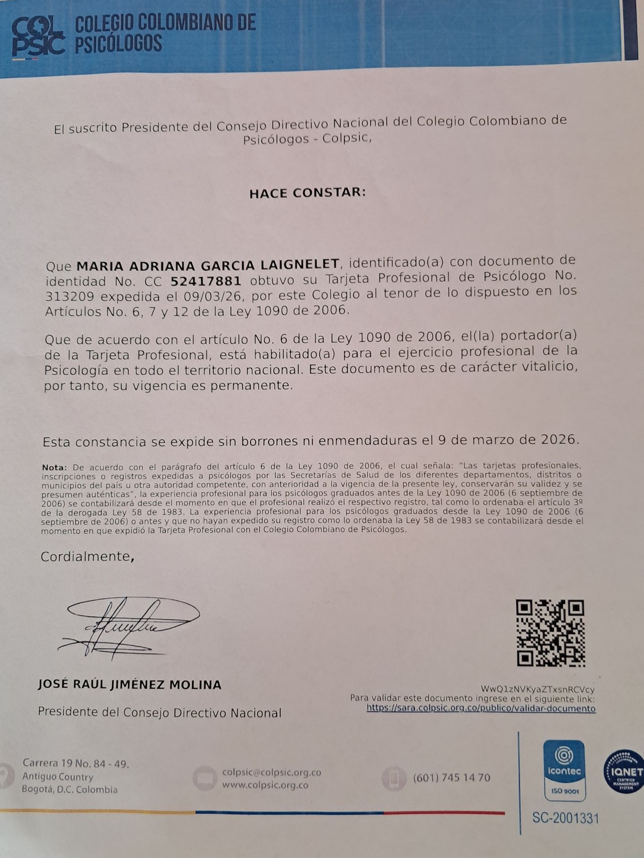 Soy psicóloga con enfoque cognitivo-conductual y con una amplia experiencia en el ámbito clínico y educativo. He tenido la oportunidad de realizar terapia psicológica y consejería a jóvenes y adultos con diversas problemáticas que les impiden tener calidad de vida y obtener satisfacción personal en su día a día.